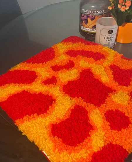 This week I've put a lot of time into punch rugging. The rug above is my very first one. I sketched the design out, and then began. After many hours, the rugging was done, so I took it off the frame, trimmed it, and neatened up the back. I'm so proud of it. I'm thinking of selling it, to get back the money I spent on all the equipment. Using photography skills I learnt at university, after doing several photo shoots, and a photography advantage course, I want to take the time to do a proper shoot of the rug, which will help it to sell, but also so I can use it in my portfolio etc. My next rug will be for my Nan for her birthday, which will also be cow print, in shades of yellows and greens.