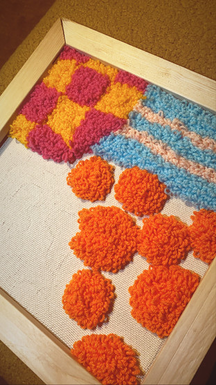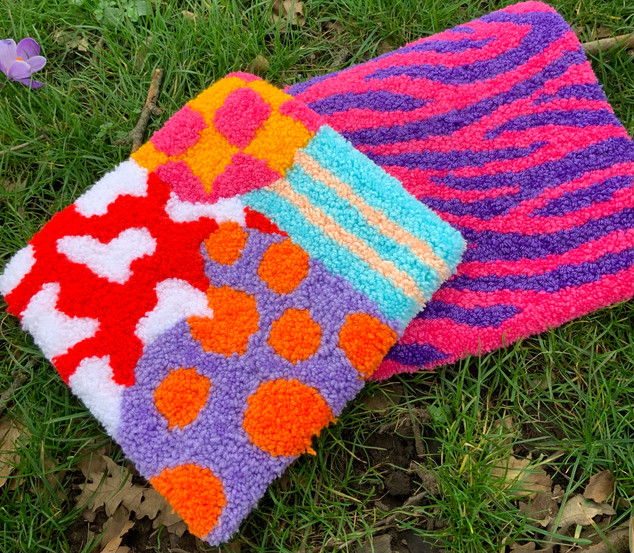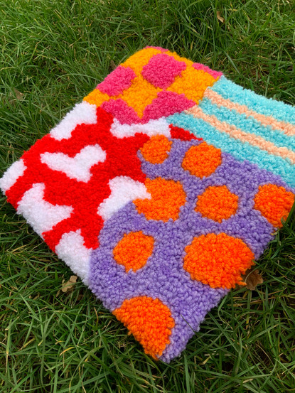 These week I’ve made a new abstract rug, which is my favourite so far. I took these out to take photos of them. The natural lighting outside is so much better for the photos, rather than the light indoors. I used some skills that I learnt in university for the photoshoot, especially from my photography advantage course. I’ve even made an Etsy account, in hopes of selling a few. I’ve made some coasters too, which I’m going to take some nice photos of next week.